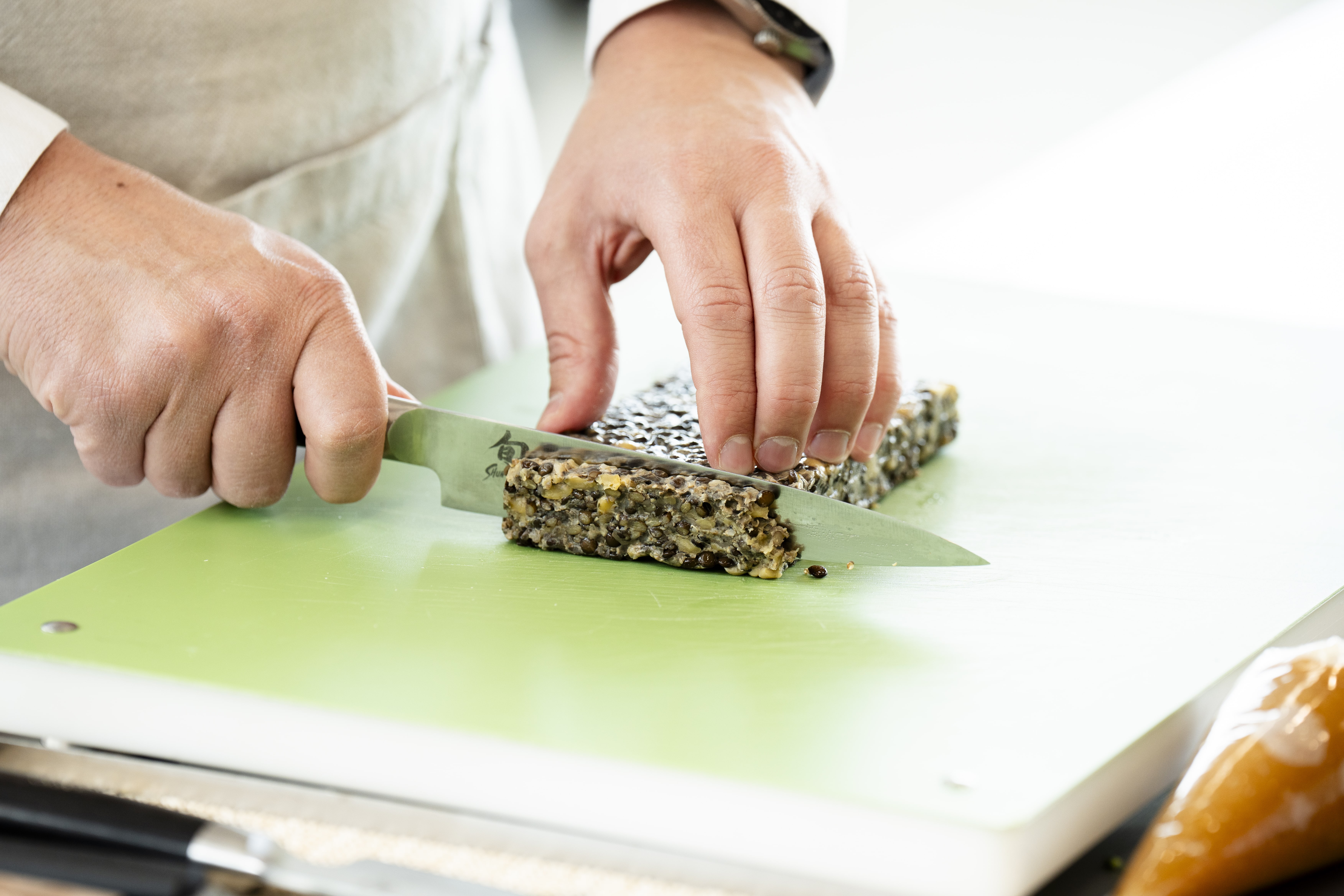 Cut Yumame into the desired shape and briefly marinate on all sides with oil in an oven dish. Preheat the oven to 180 °C and add the Yumame pieces. Depending on the desired texture and color, bake for about 5–10 minutes.